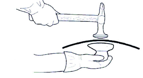 對鋁板的修復,為了防止在校正中因敲擊過重而導致鋁板過度拉伸,一般應使用膠錘、木錘,不能使用常規(guī)的鋼板整形工具。用鐵錘和墊鐵校正鋁板時,應注意以下兩點: