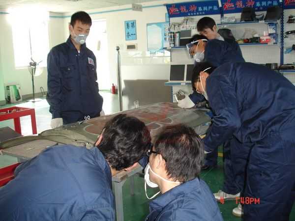 身穿龍神鈑噴工作服實(shí)操體驗(yàn)鈑金修復(fù)技術(shù)