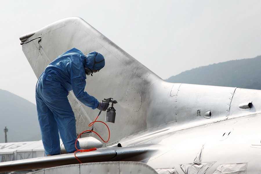 工作人員在整修60549號(hào)殲6。
