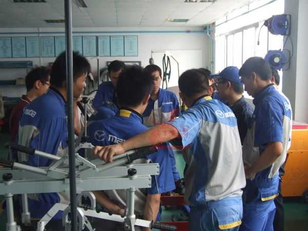 全國一汽馬自達各服務(wù)店都配備具有國際領(lǐng)先的鈑金維修工具設(shè)備,為了最大限度地利用這些高效率的工具設(shè)備,提升鈑金作業(yè)人員的技能及素養(yǎng),并為馬自達系統(tǒng)的售后服務(wù)體系打造一支鈑金維修技術(shù)過硬的隊伍。經(jīng)過一汽馬自達集團服務(wù)部統(tǒng)籌與組織,來自全國各地一汽馬自達服務(wù)店D0910班的第十期培訓(xùn)學(xué)員,于2009年10月14日到珠海接受鈑金技術(shù)提升培訓(xùn)。