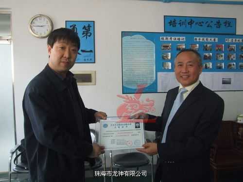 龍神總經(jīng)理彭小龍為老師頒發(fā)汽車(chē)鈑金與噴漆修復(fù)技術(shù)合格證書(shū)
