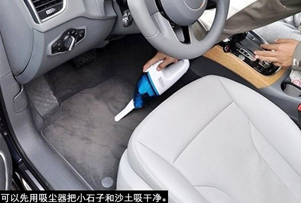 車輛的地面往往有很多沙土或小石子等臟東西,要把他們清理干凈,最簡單的方法就是用吸塵器。如果家里條件允許,可以使用家用吸塵器,因為這種吸塵器吸力大、效果明顯,而市場上經(jīng)??吹降能囕d吸塵器一般吸力比較小,用起來比較費勁,但如果不具備使用家用吸塵器的條件,也只能用車載吸塵器將就一下了。