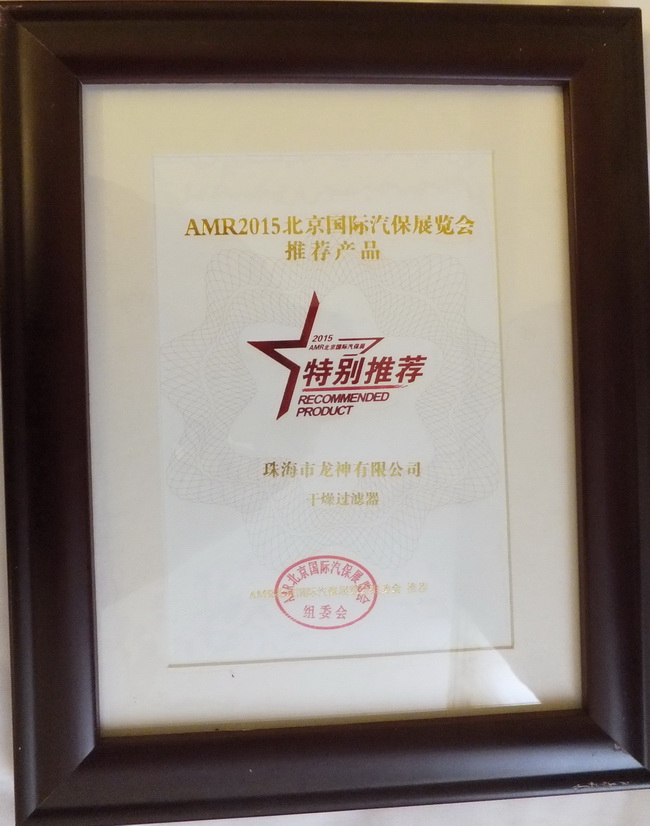 2015年4月8日,2014年度“20佳汽保產(chǎn)品”、“20佳維修工具”、AMR2015北京國(guó)際汽保展推薦產(chǎn)品頒獎(jiǎng)晚宴于北京成功舉辦。珠海龍神“干燥過濾器”,“鈑噴修復(fù)模擬車架”榮獲ARM2015北京國(guó)際汽保展覽會(huì)推薦產(chǎn)品獎(jiǎng)。