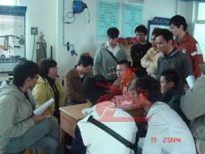(左二)龍神彭小浣經理與龍神班學生交流在企業(yè)實習經驗