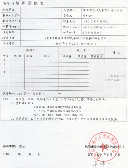 2、報(bào)名回執(zhí)表需在培訓(xùn)開始前3日,回傳至我校。