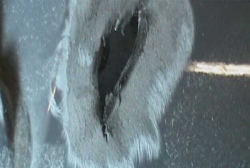 步驟1:當(dāng)塑料件出現(xiàn)穿孔時(shí),首先使用磨頭打磨掉洞孔周圍的毛刺,如圖1-1所示。
