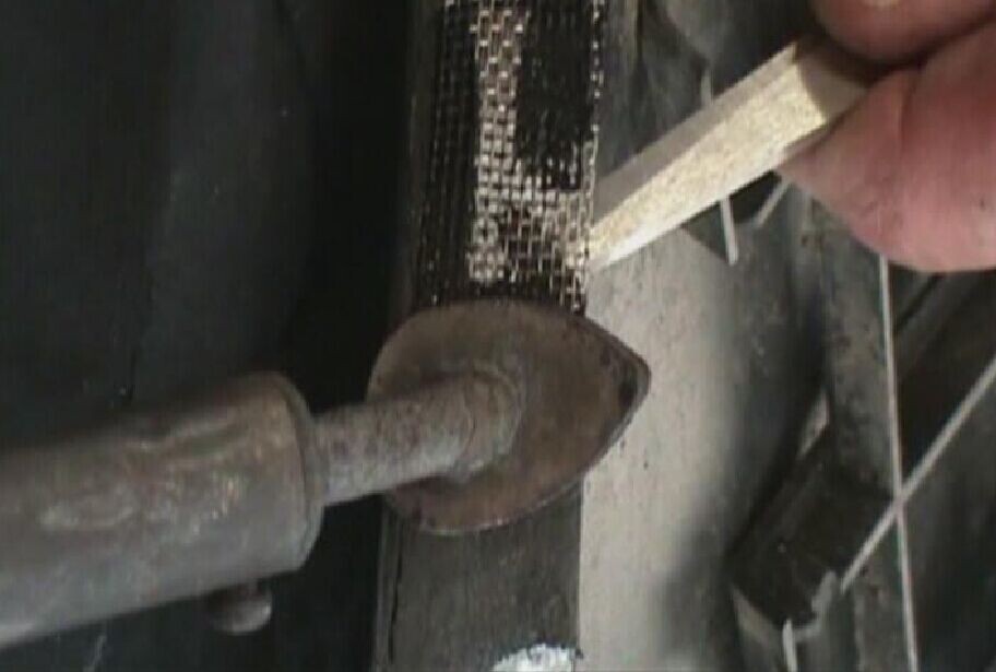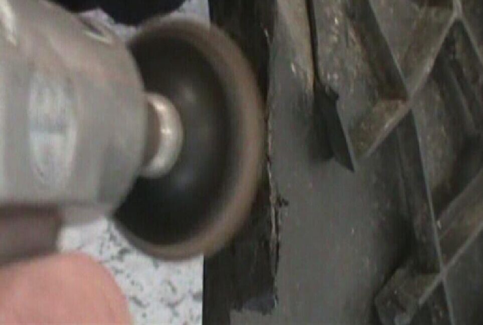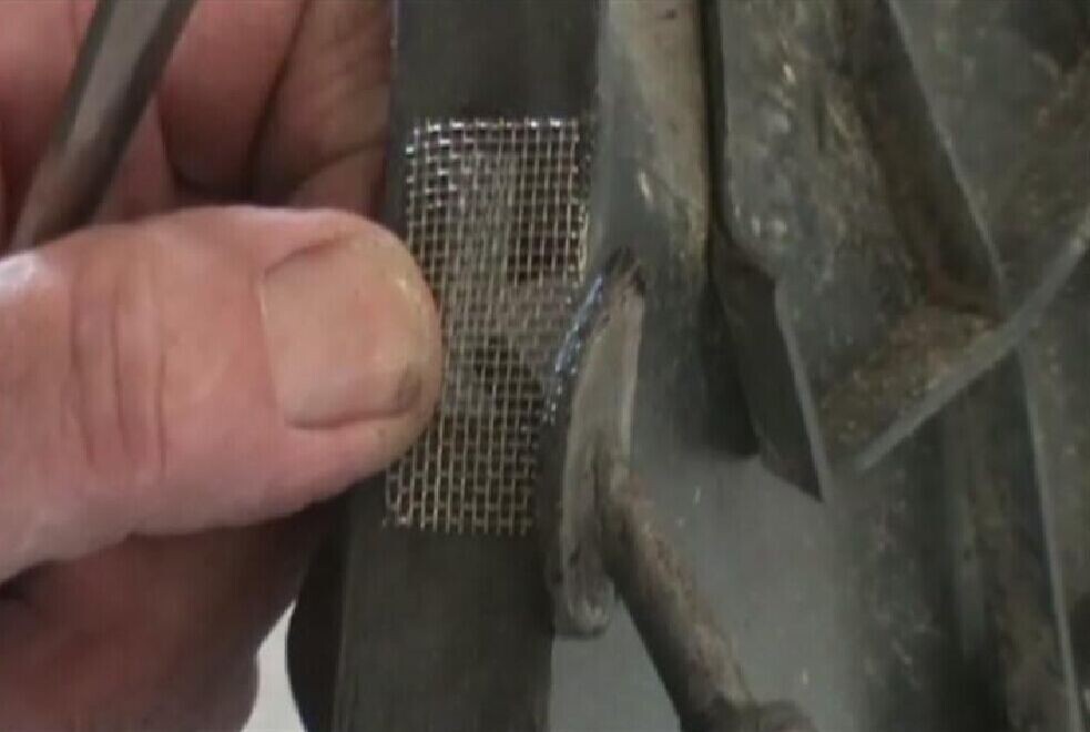 步驟6:把烙鐵按壓在加固網(wǎng)上加熱,并保持一定時(shí)間,使熔化的塑料將無(wú)銹加固網(wǎng)完全覆蓋,如圖1-6所示。注意要使覆蓋在無(wú)銹加固網(wǎng)周邊和折邊的熔膠具有一定厚度。