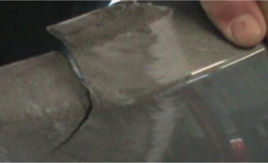 步驟8:等待熔膠干燥后,使用雙動打磨頭配120號砂紙,小心地對受損表面進(jìn)行打磨,使其平整。打磨時,注意不要使無銹固網(wǎng)裸露,尤其對邊角的地方要特別注意,如圖1-8、圖1-9所示。