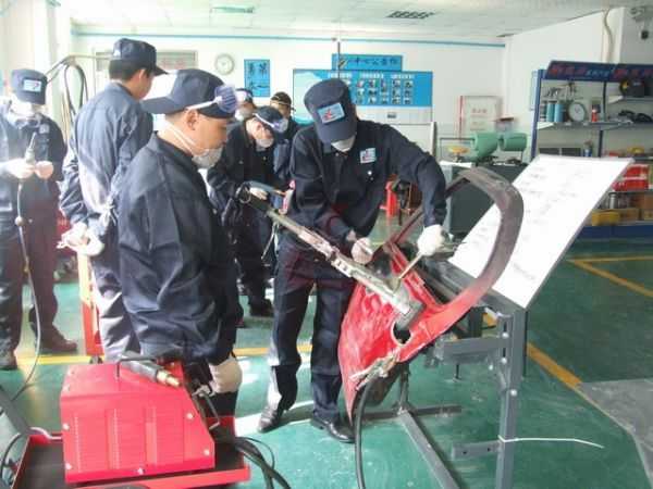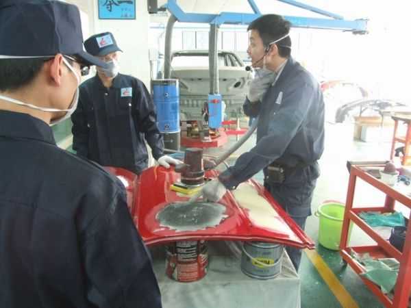 鈑金組朱老師指導正確使用鈑金整形架和工具修復車身